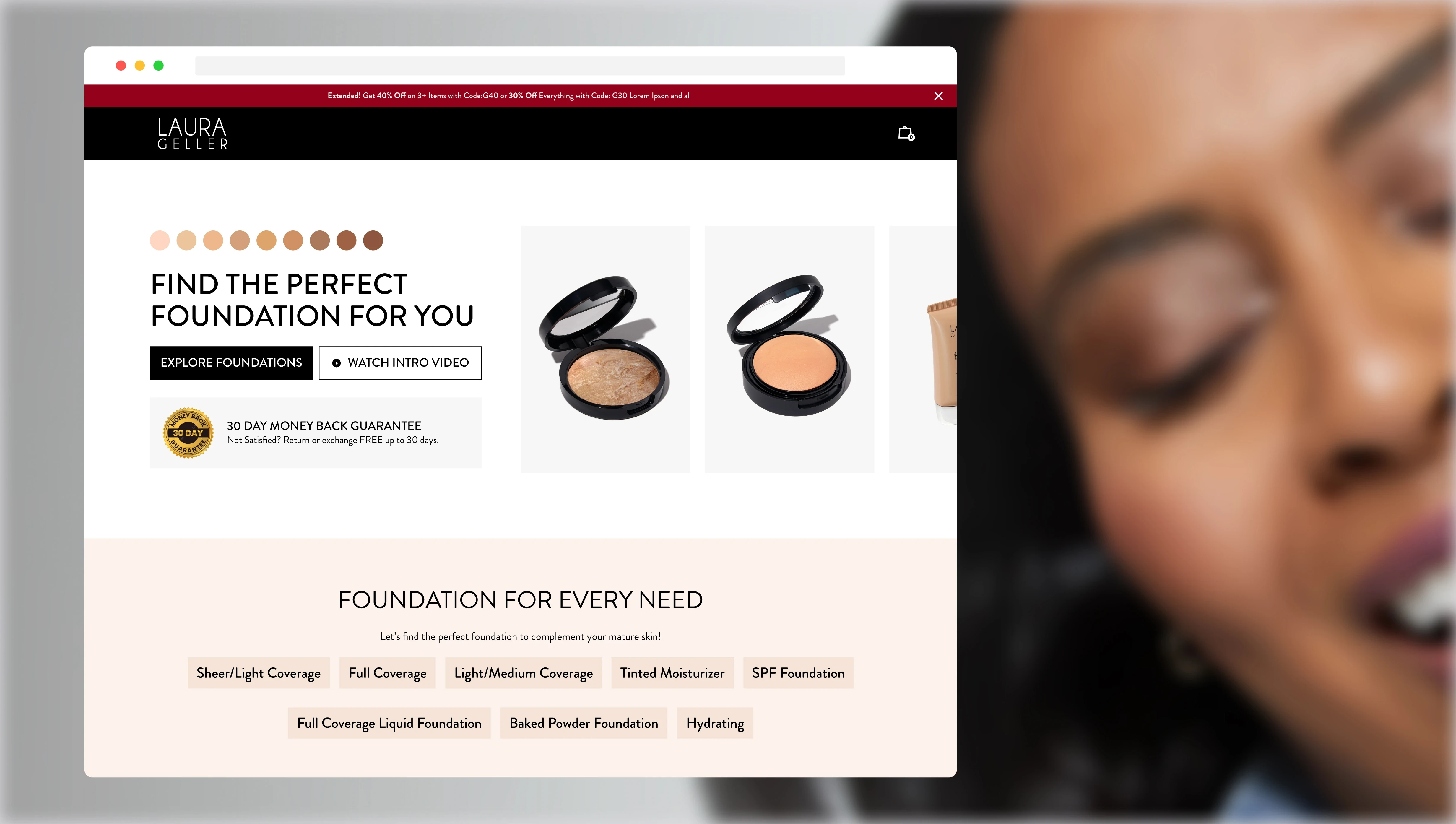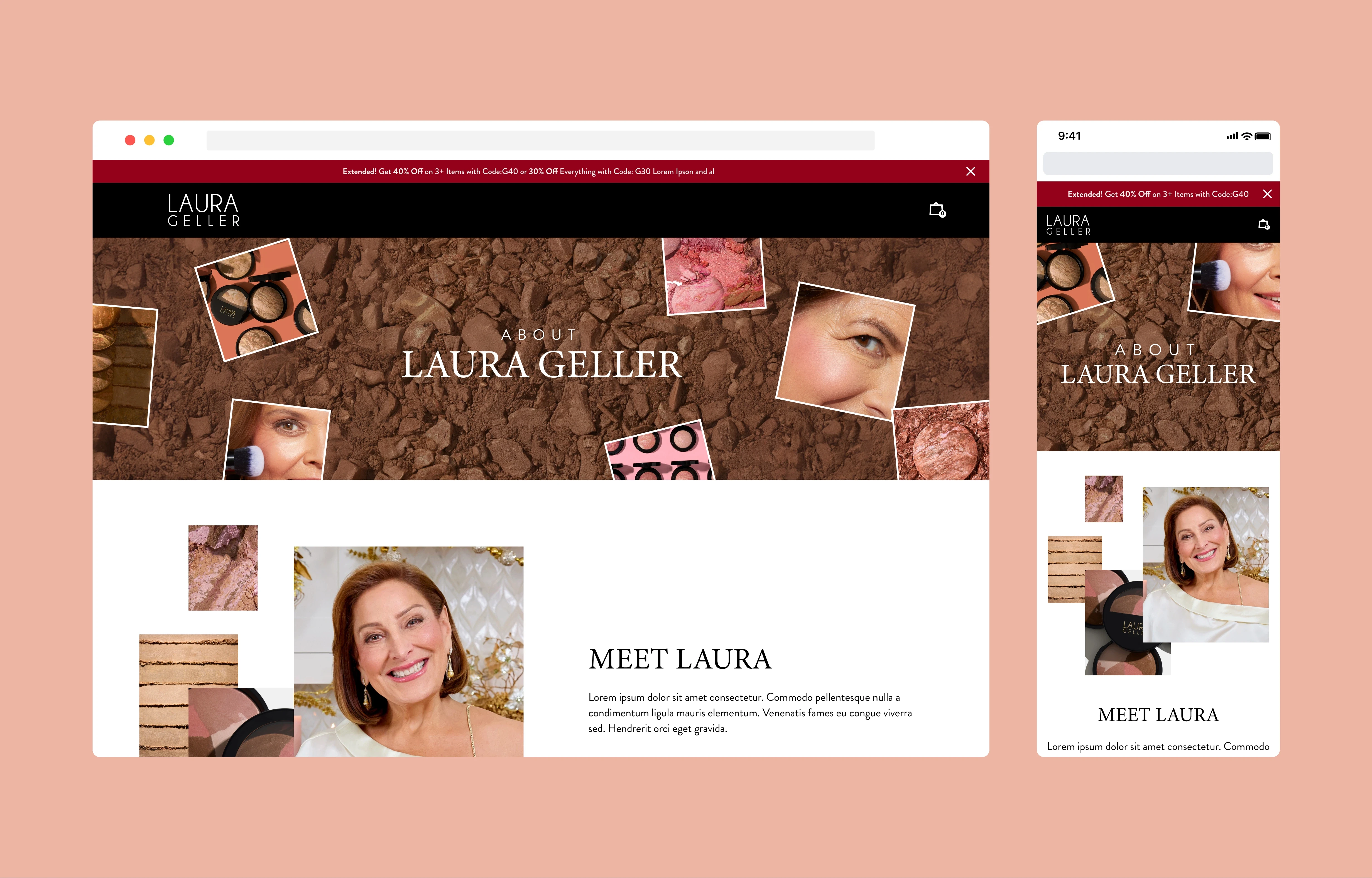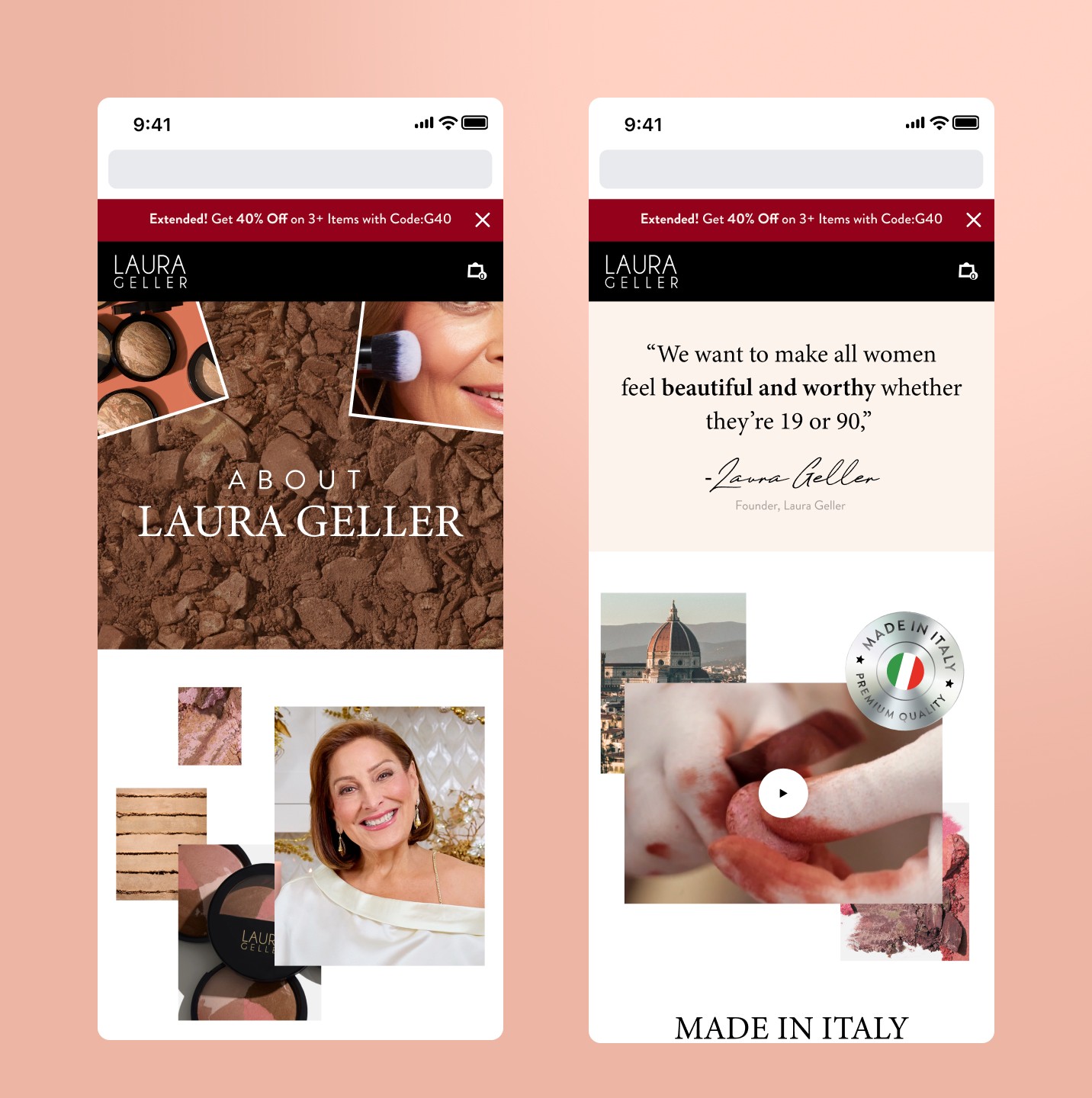 The About page became a space to honor Laura Geller’s legacy — from her pioneering role in creating the first primers to her decades of shaping modern beauty. It gave shoppers a deeper connection to the brand’s roots and the woman who started it all.